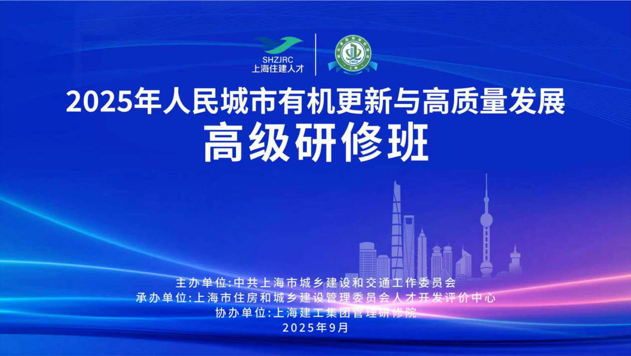 为深入学习贯彻中央城市工作会议精神,践行人民城市重要理念,推动行业高层次人才队伍建设,根据市建设交通“十四五”人才发展规划和专业技术人才知识更新计划,2025年“人民城市有机更新与高质量发展”高级研修班于9月18日-20日在上海建工集团管理研修院成功举办。本次研修班汇聚各方智慧,围绕城市更新展开深入研讨,为推动城市高质量发展提供新思路、新方法。
