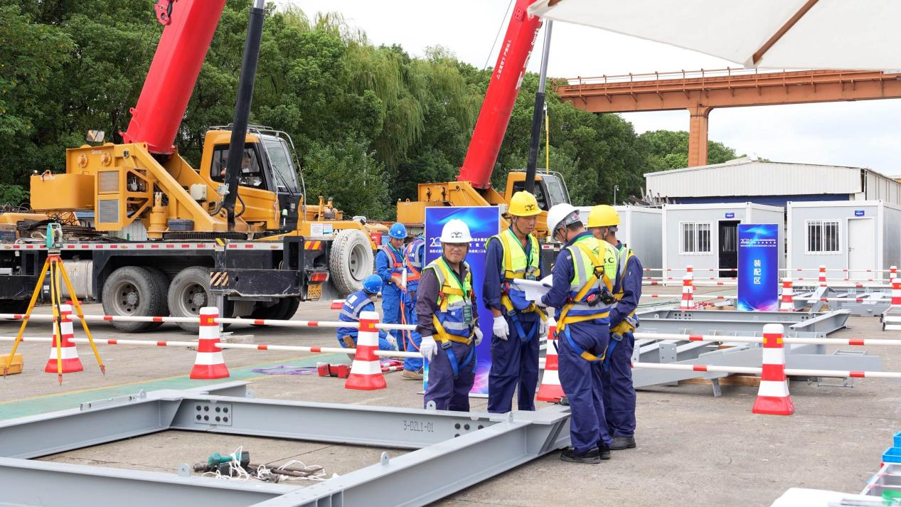 ◆“装配式建筑施工员(钢结构建筑)(三级)”赛项由市金属结构行业协会主办,中冶(上海)钢结构科技有限公司承办。比赛主要考核选手对于钢结构构件安装基础知识、识读图纸与技术交底、构件吊装与临时支撑、螺栓连接、安全保障与质量控制等能力。