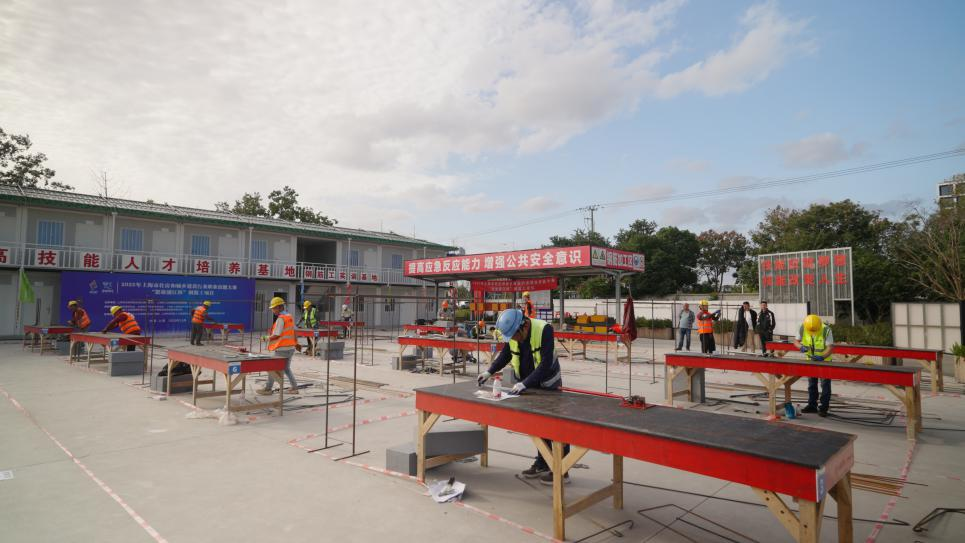 ◆“钢筋工”赛项由市建设协会、闵行区建筑业协会、上海建工集团新时代产业工业劳务基地、上海建工五建集团有限公司、上海沪遵建筑劳务集团有限公司联合承办。参赛选手除了需具备钢筋工作业基本技能外,还应掌握图纸识别、复杂结构、构件的钢筋安装以及非常规预应力筋配料与安装等高级技能。本次竞赛依据住房城乡建设部全国行业赛钢筋工赛项内容,为部赛选拔储备参赛选手。